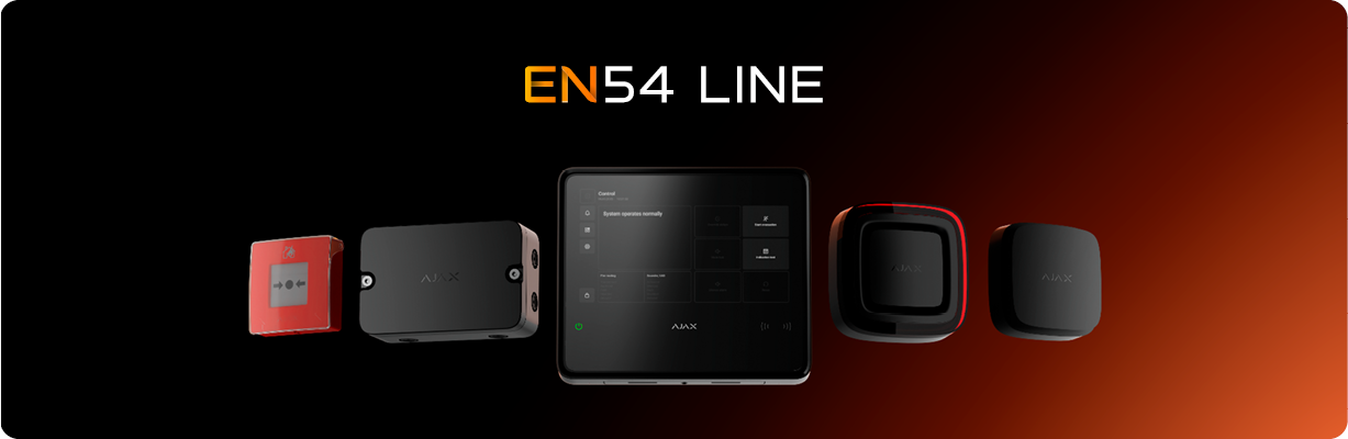 EN 54 ist ein europäischer Standard, der technische Anforderungen an Brandmeldesysteme stellt – von der Zentrale bis zu akustischen Signalgebern. Eine Ajax-EN54-Brandwarnanlage erfüllt diese Standards vollständig.