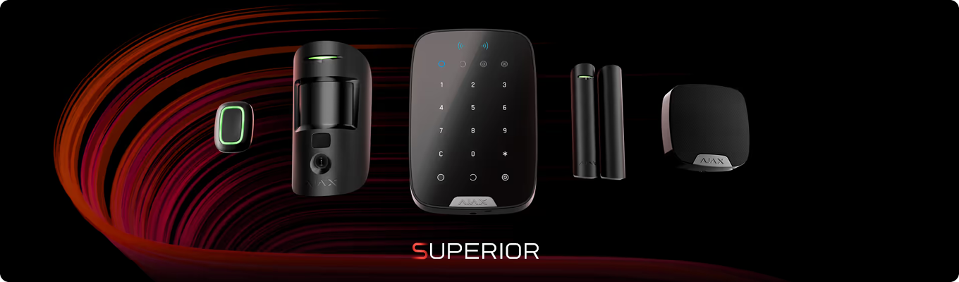 - Die Superior Serie von Ajax vereint kabellose Jeweller-Module mit leistungsstarken Fibra-Buskomponenten – für ausgezeichnete Flexibilität und hohe Systemstabilität.